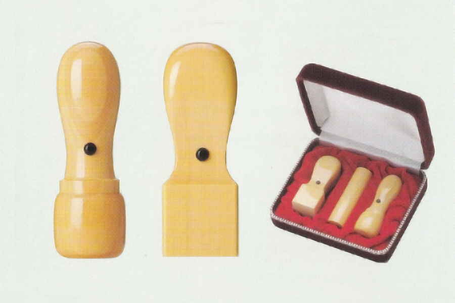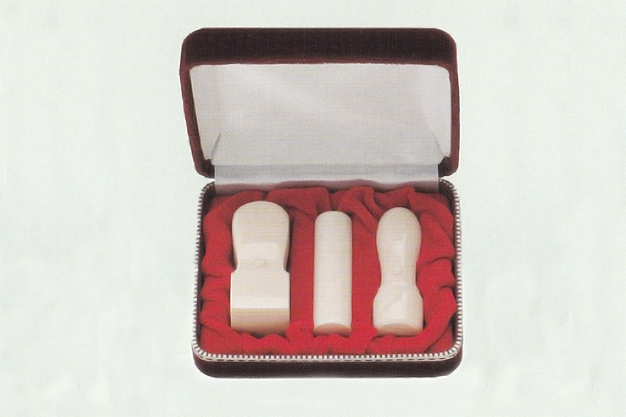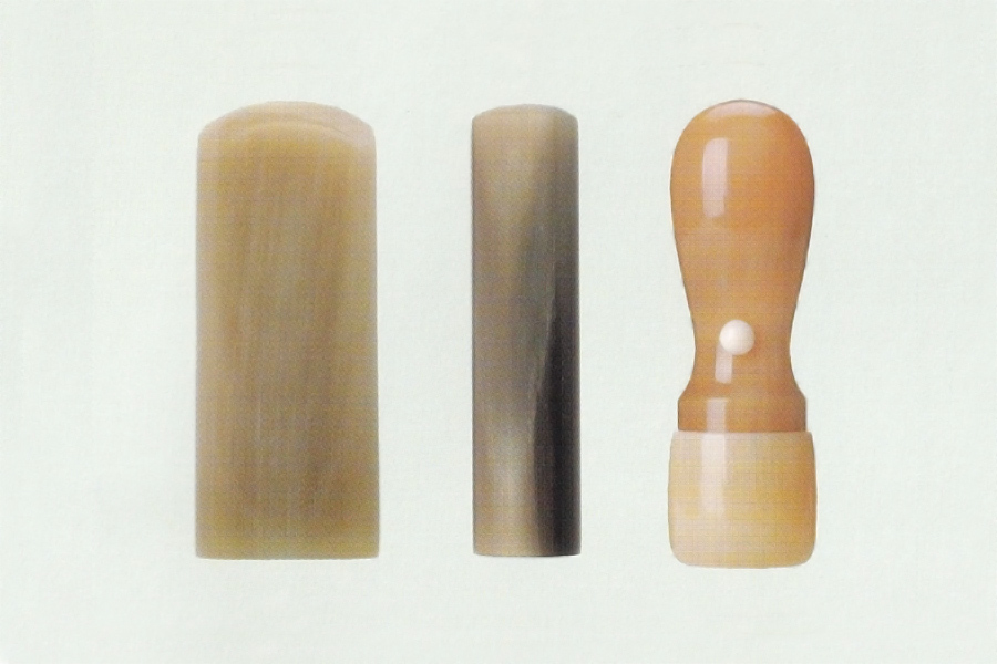 印章の素材は、変質や磨耗しやすいものはNG。象牙が印材の最高級品といえます。その材質の気品はもちろんのこと、固さが適度で繊細な彫刻ができ、変質・磨耗しにくく耐久性にもすぐれています。そのほか水牛も象牙に次ぐ高級印材。なめらかな素材の美しさと硬さ、彫りやすさ、朱肉の含みなど優れた特性があります。木なら柘(つげ)材がお勧めです。